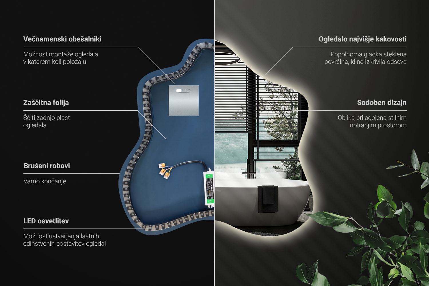 Vabimo vas v svet ogledal, ki ne odsevajo le podob, temveč tudi našo predanost kakovosti. Vsako naše ogledalo je kombinacija najvišje kakovosti izdelave in estetike, ki jo iščete!