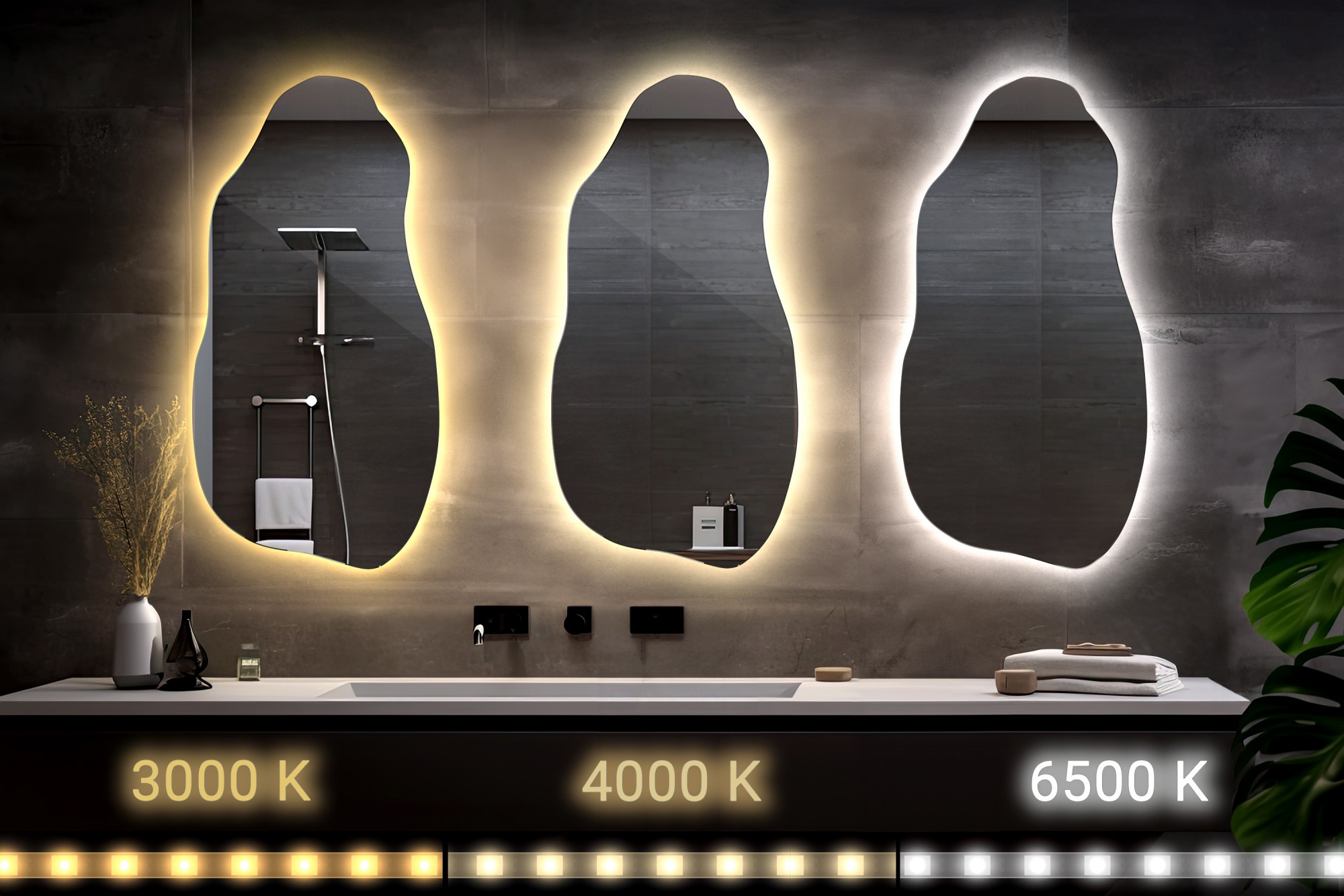 Sodobno ogledalo z LED osvetlitvijo nepravilne oblike je popolna kombinacija elegance in sodobnosti, ki poudarja edinstven značaj vsakega interierja. Njegova nestandardna oblika pritegne pogled, prostoru daje umetniški izraz in izvirnost. Nežne linije in popolnoma dodelani robovi dajejo celoti lahkotnost, vgrajena LED osvetlitev pa ustvarja subtilen sijaj, ki ne le izpostavi obliko ogledala, temveč v prostor vnaša toplo, prijetno vzdušje. Zato je idealna izbira tako za sodobne kopalnice kot za stilske dnevne sobe ali spalnice.